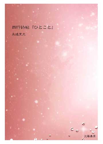 与謝野鉄幹&与謝野晶子創設の母校、 文化学院にて詩(創作)を専攻し、 講師である室生犀星の教えを学んだ永遠克光。 現代詩人の中で、唯一『四行詩』を追求する詩人が、 学生時代より書き溜めた渾身の四行詩を、 自ら厳選して一冊の本にまとめた。 現在もブログ、四行詩帖『ひとこと』にて、 日々四行詩を更新中である。 http://blog.goo.ne.jp/sakushiya |