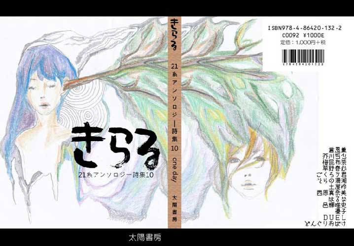 *** ごあいさつ *** 2014年冬、21系アンソロジー詩集「きらる」も10冊目を数えることができました。この日を迎えるまでに読者として、執筆者として、ビジュアルでの参加者として協力者として、またさまざまな局面で支えてくださってきた多くの隣人、このささやかな季刊詩誌を扱ってくださっている全国の書店さま、そして「きらる」誕生のきっかけとチャンスを与えてくださった太陽書房の佐藤さま、すべての皆さまに心からの感謝と御礼を申し上げます。 さて、この号からついに150ページ体制のスタートです。創刊時より全100ページでしたが、前号にてワンクッションを置き、いよいよです。あたらしい詩人とのご縁にも恵まれさらに「写真詩」が二部制へと進化。ほかにも仕掛けをと書籍としての工夫も凝らし、「詩を庶民のものに」との創刊当初からの哲学が次のステージへと向かいはじめたその力強い鼓動を詞花集「きらる10」からきっと感じ取っていただけるはずです。(蒼風) *** *** 21系執筆メンバー *** 蒼風薫 芥川哲也 梅昆布茶 草野春心 ごくろう君 そらの珊瑚 土屋怜 西原真奈美 はるな 邑輝唯史 優子 *** ビジュアルメンバー *** 柿木一隼(表紙題字) はるな(表紙画・装丁、本文扉画・構成) どんぐりおばけ(巻頭詩画・構成、各部扉画・構成) 芥川哲也(目次挿画) ごくろう君(DUEL / 写真・構成) 蛙夢太郎(「第三部 / 写真詩」写真提供) 竃武利(「第四部 / 写真詩」写真提供) *** 全83篇 *** |