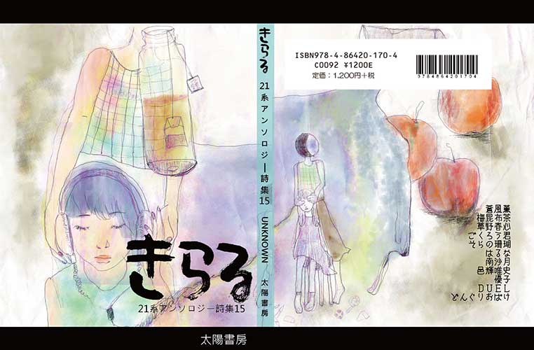 *** ごあいさつ【テーマに寄せて】 *** Unknown、知られざるもの、というのは怖れを生みもしますが、同時に可能性に満ちている。未来に向けた可能性なのか、過去に向けた可能性なのかは場合によるが。ところで、可能性というものを私は「影」のようだと思っている。それは伸びたり縮んだりするけれど、夜になれば目にはほとんど見えなくなるけれど、基本的に消えることはないから。(草野) *** ごあいさつ【読者の皆さまへ】 *** 「詩を庶民のものに」として発刊された詞花集(アンソロジー詩集)『きらる』をこれまであたたかく見守りくださりほんとうにありがとうございました。次号『きらる16』は“風”をメインテーマに発行予定は3年後。少し長めのバカンスを戴きます。軽い手荷物だけを携えて……またいつかお会いできる日まで。(21系一同) *** 21系執筆メンバー *** 蒼風薫 梅昆布茶 草野春心 ごくろう君 そらの珊瑚 はるな 南沙月 邑輝唯史 優子 *** ビジュアルメンバー *** 柿木一隼(表紙題字) はるな(表紙画・装丁、本文扉画・構成) どんぐりおばけ(巻頭詩画・構成、各部扉画・構成、本文イラスト) 有賀慧至(目次・本文イラスト) ごくろう君(DUEL/写真・構成) 蛙夢太郎(「第三部/写真詩」写真提供) 竃武利(「第四部/写真詩」写真提供) 長原弘之(落款制作) 蒼風薫(奥付イラスト) *** 全80篇 *** *** “21系”は『きらる』に集った詩人のグループ名です。 *** |