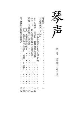 巻頭言 三島由紀夫「女神」作品を構成する二重の意味 サイト紹介 吉之助「歌舞伎素人講釈」 シリーズ 初心者が読む『文芸文化』1 特集 三島由紀夫と東文彦 (1)東文彦の評伝1 (2)東文彦の作品紹介「西湖」と「夢」 同人参加と投稿のお誘い |